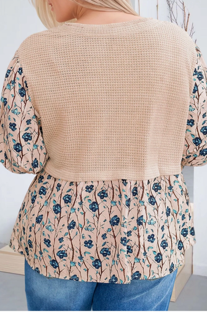 Beige Floral Knit Crew Neck