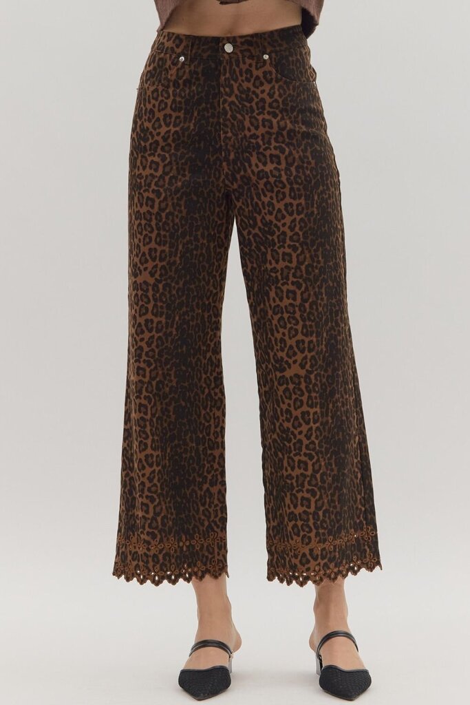 These trendy leopard pants are super cute on... the eyelet design on the bottom is so cute! Perfect for fall!