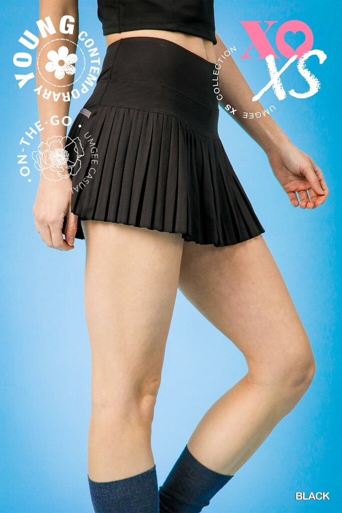 Flirty and fun, this pleated skort is a must-have for your closet! The classic black color and playful pleats make it perfect for everything from casual outings to more dressed up occasions. The built-in shorts ensure you can move with confidence and ease.